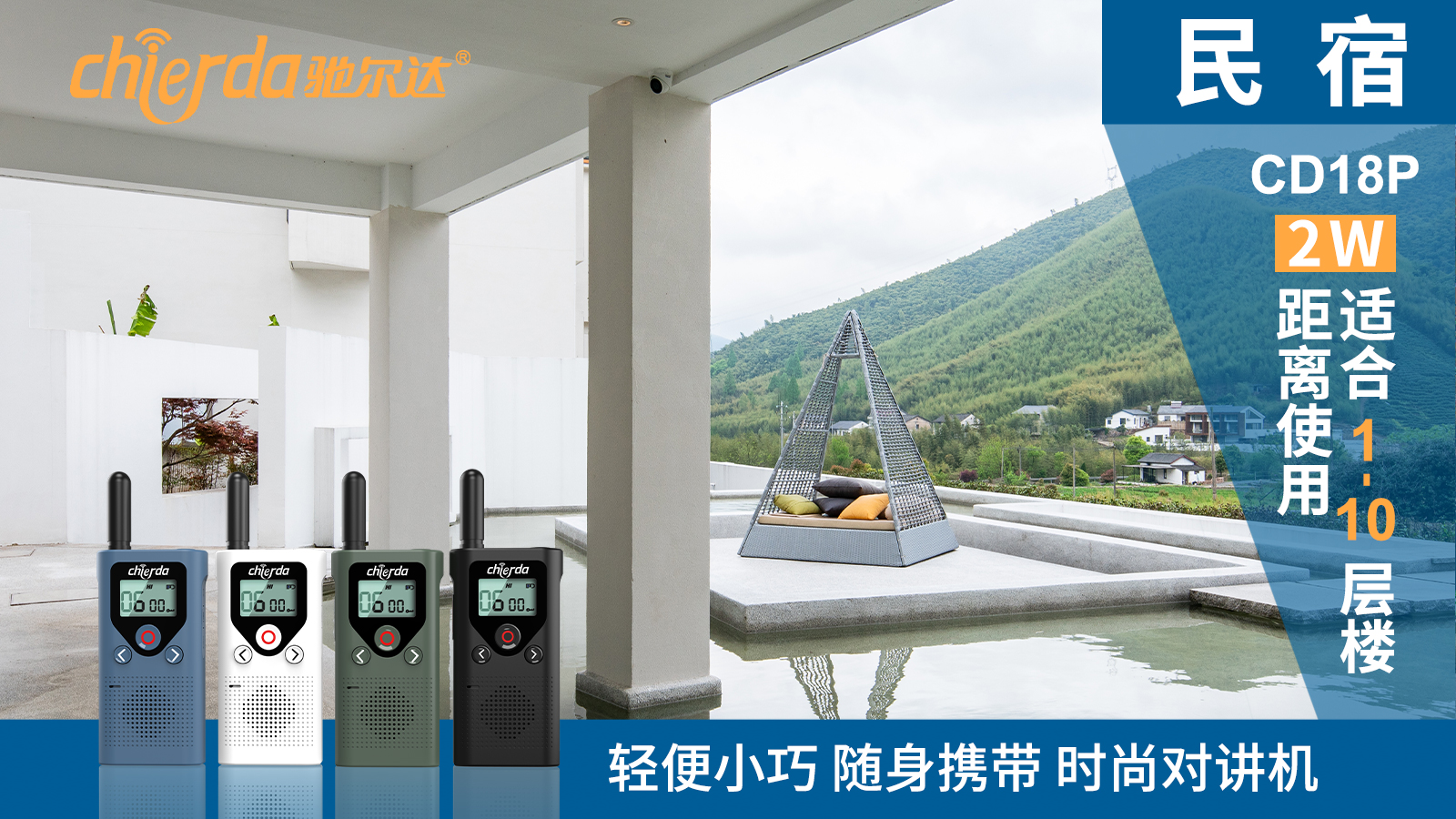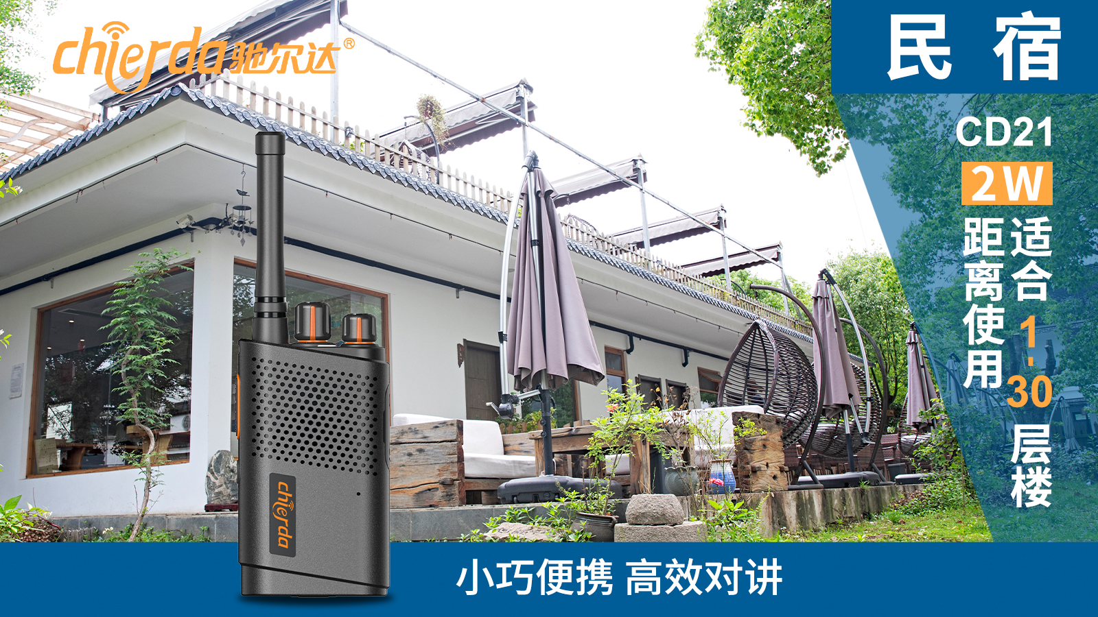 大家對民宿的不同需求和體驗,也就造就了民宿中互通互聯(lián)通訊的需求逐步增長,但是由于不同的民宿建筑風(fēng)格、面積、格局不一樣,不同的類型適合不同類型的通訊工具。為滿足不同需求,馳爾達(dá)公司特推出了適合不同需求、不同場景的對講機產(chǎn)品。例如: